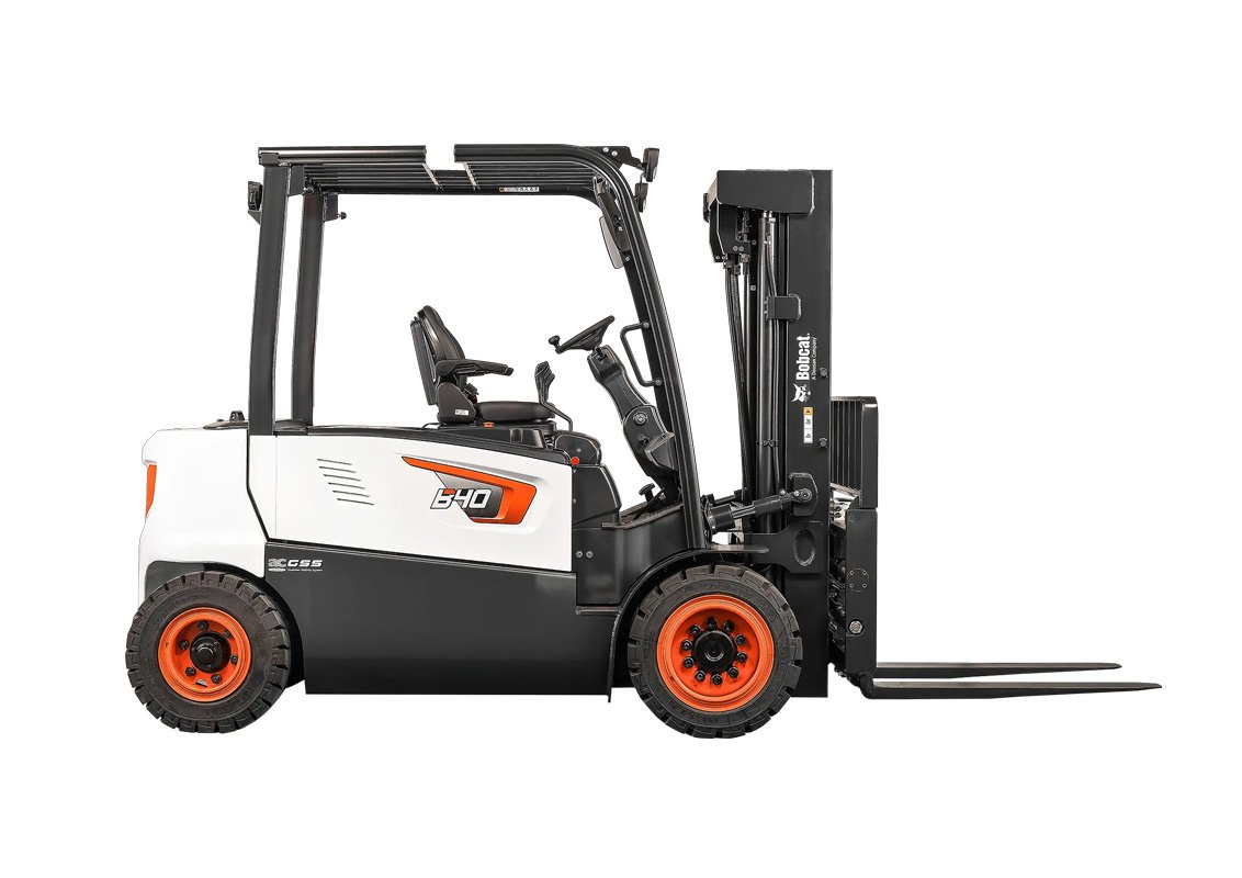 Part of Bobcat's new 80 Volt electric counterbalance forklift series, the B40-7 offers a generous load capacity of 8,000 lbs, and lift height of 128-inches Increase productivity with its various safety and convenience features such as Operator Sensing Systems, ease of access, adjustable steering columns, and premium suspension seats. This series gives you the power needed to knock out tough jobs.