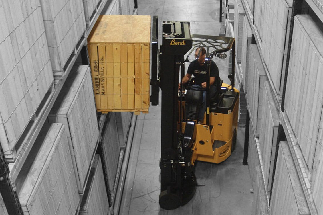 The Bendi B40AC is a high performance electric forklift with fast travel speed and ability to climb steep ramps. With the capability to work in aisles as narrow as 71 inches, it is suited for the most warehousing operations. You can use the B40AC forklift inside as well as outside on paved surfaces. This model can do most of the jobs of the reach and counterbalanced trucks but in much tighter spaces. Designed for ease of operation, you can place or retrieve loads without any hassles.